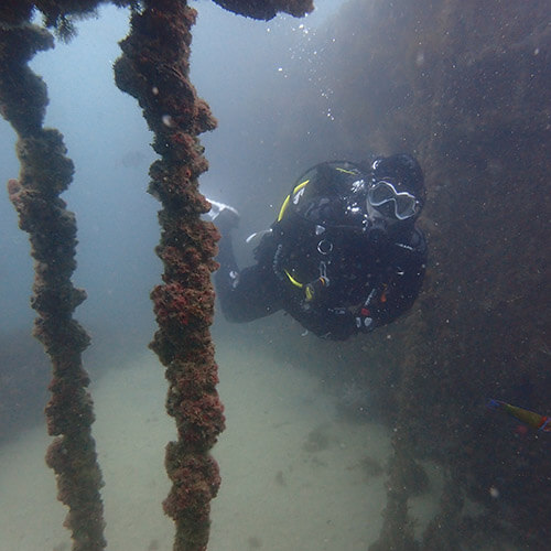 PADI Advanced Open Water certification takes you into a more elaborate part of diving. The course takes you deeper (30m), shows you new things (shipwrecks), and teaches you more techniques (buoyancy and navigation). There are two required dives (Deep & Navigation), and you get to select three more from a wide range of specialties.